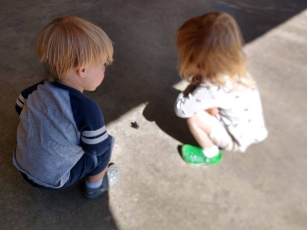 I try to interfere only when things are getting out of hand. I think it’s important for them to work out their own dynamic—and excessive chastising only makes the situation more volatile (and encourages taddling next time). So it helps some to let them take ownership of their relationship, inasmuch as toddlers are capable of doing so.